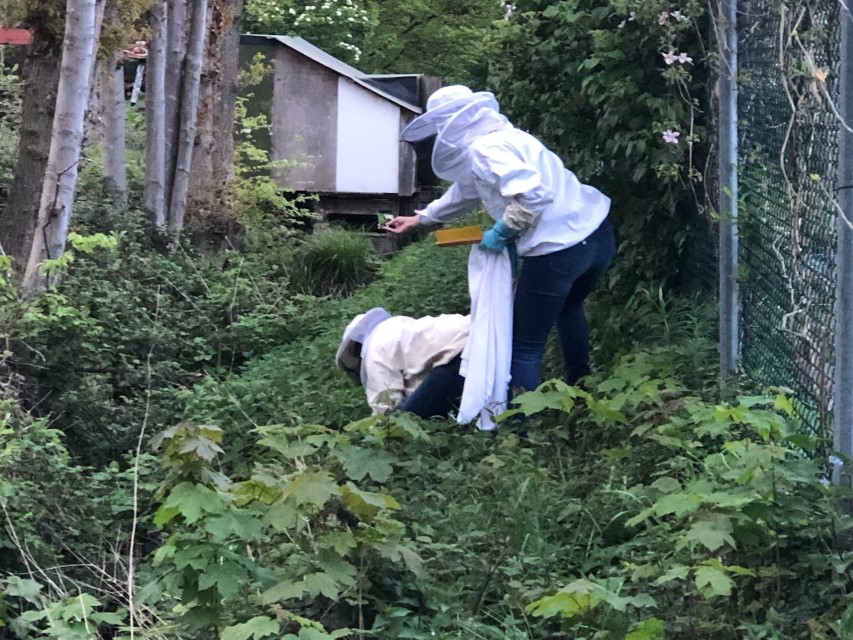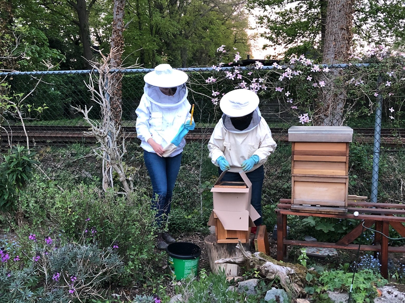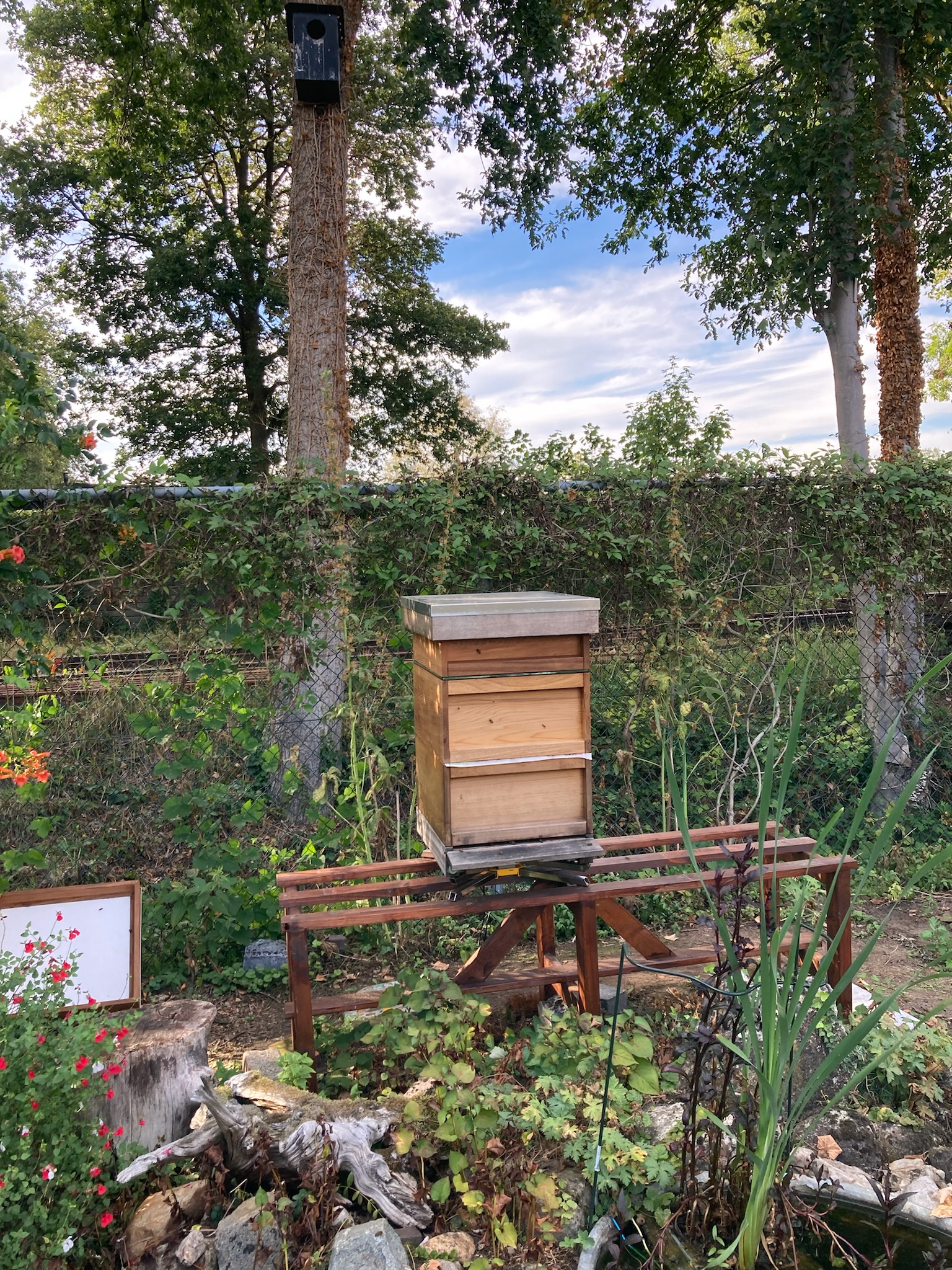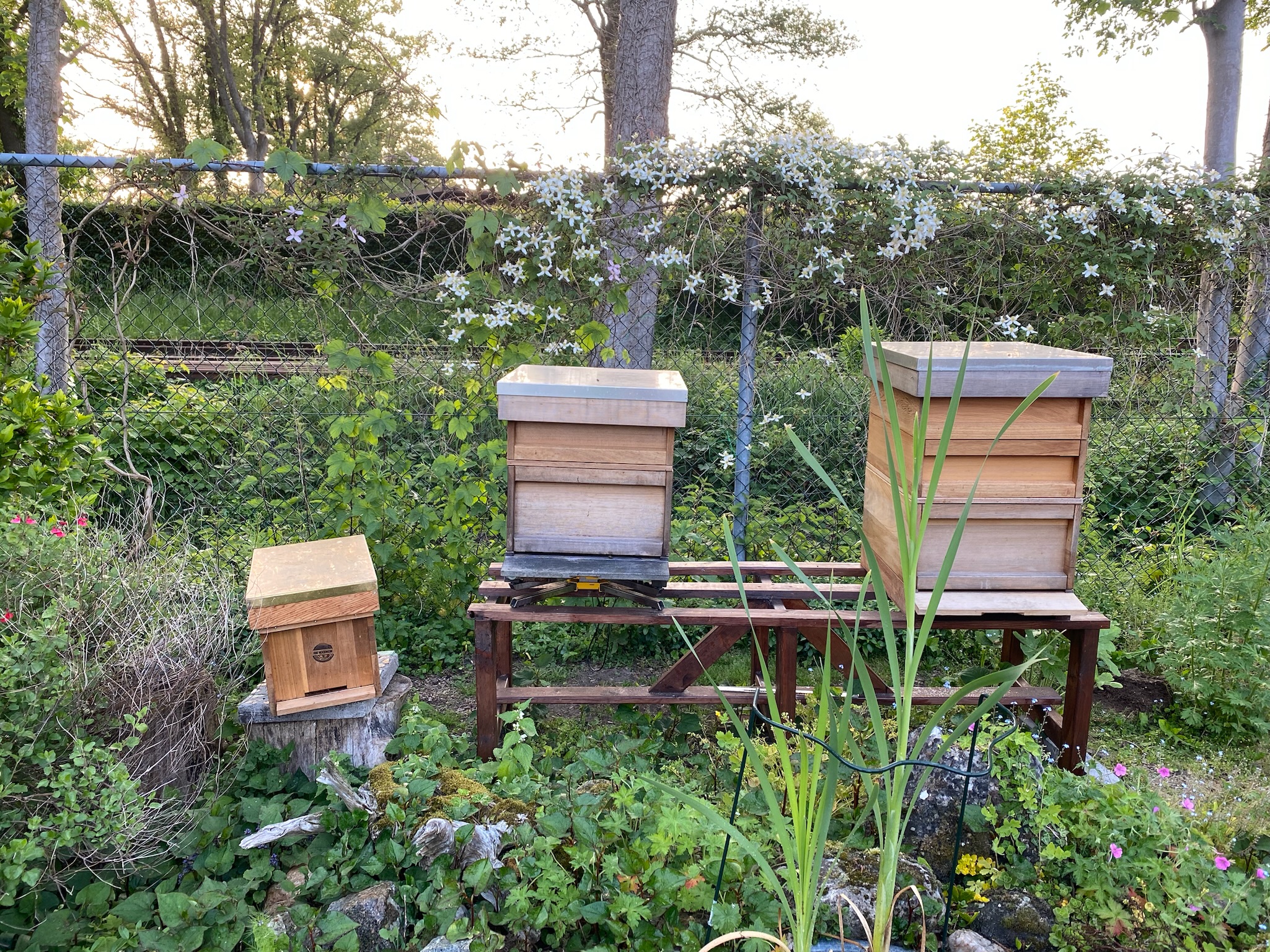 Als dan eindelijk mijn derde kast is gearriveerd kan ik, met hulp van bevriende imker Helena, de krakers een huis geven.