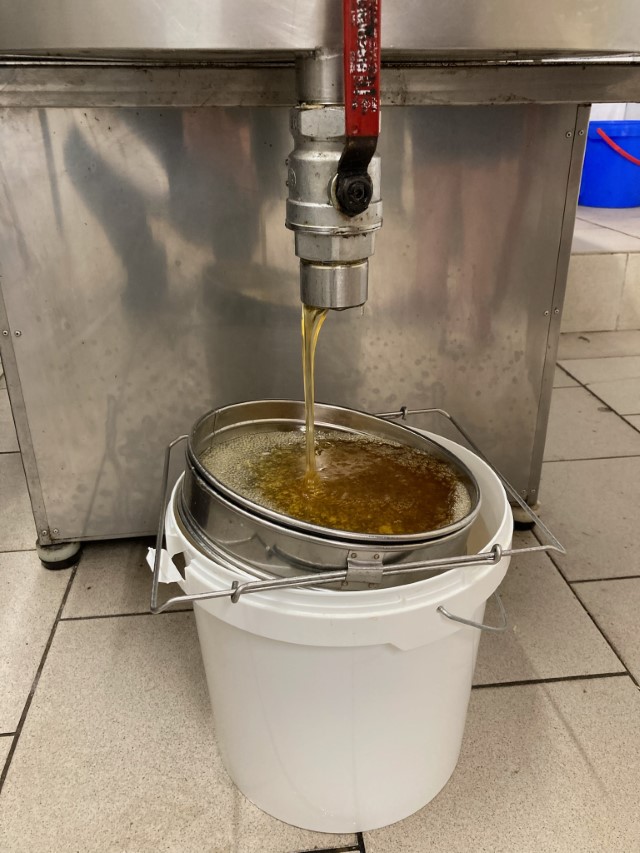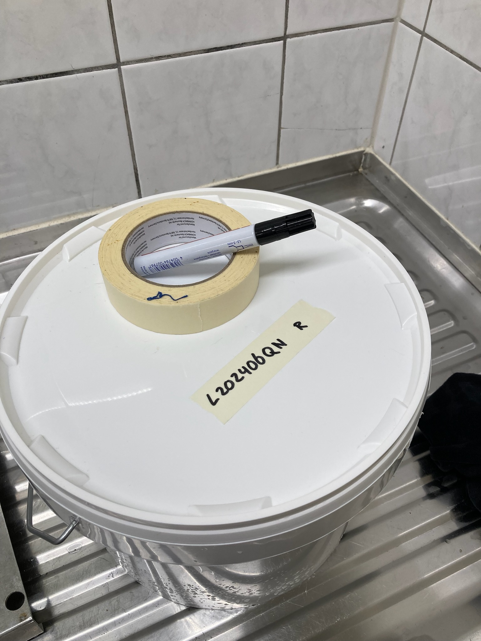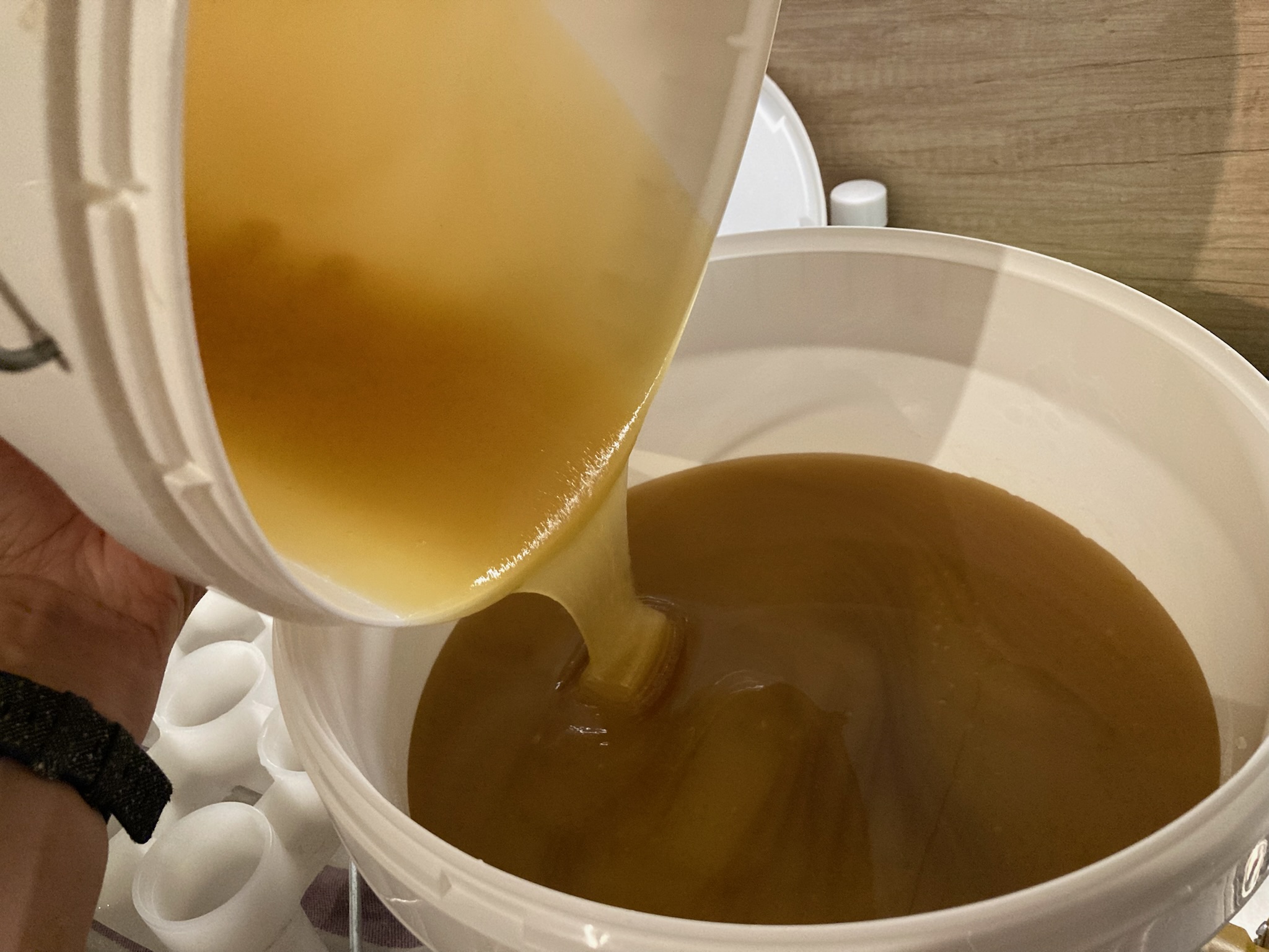 Eindelijk was daar de tijd om de honing die ik eerder had geoogst te bottelen. De snijkraan die al een tijd in de bak ligt hebben we eindelijk geinstalleerd in een voedselveilige emmer, en daarmee kan het bottelen beginnen! Samen met mijn man ging ik aan de slag met actieve zuurstof om de potjes en deksels schoon te maken.