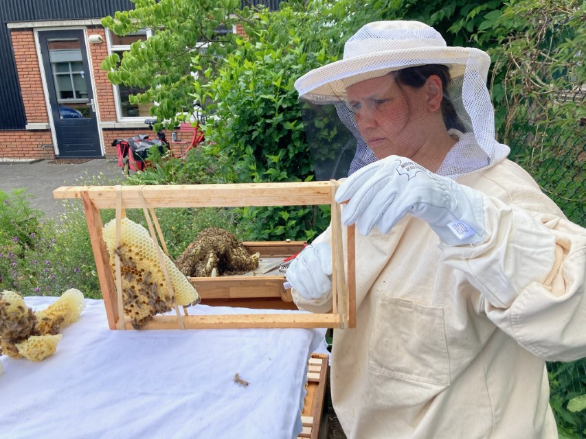 Vrijdag krijg ik in de loop van de middag een telefoontje van mijn schoonvader: ‘De bijen zijn heel erg aan het vliegen, wat kan er aan de hand zijn?’