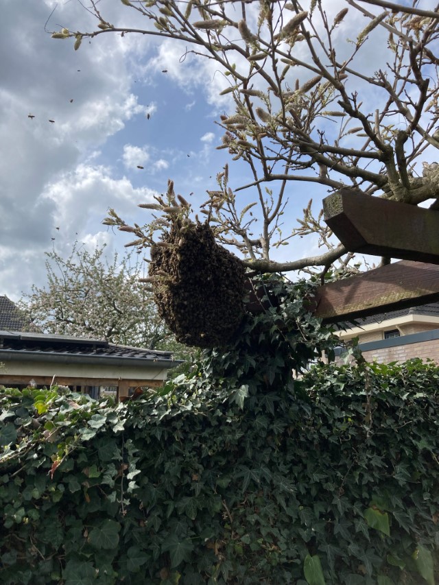 Ik had echter beter wel verder kunnen zoeken, want twee dagen later kreeg weer zo'n gevreesd telefoontje: 'de bijen zijn aan het zwermen!'