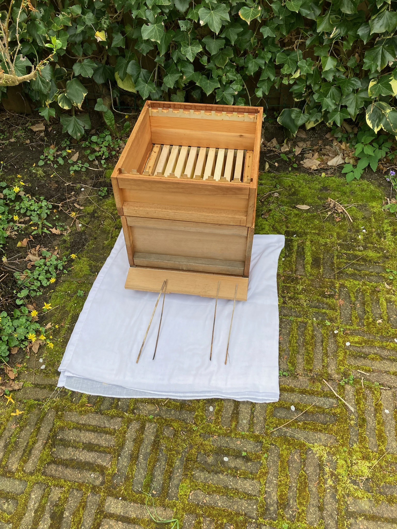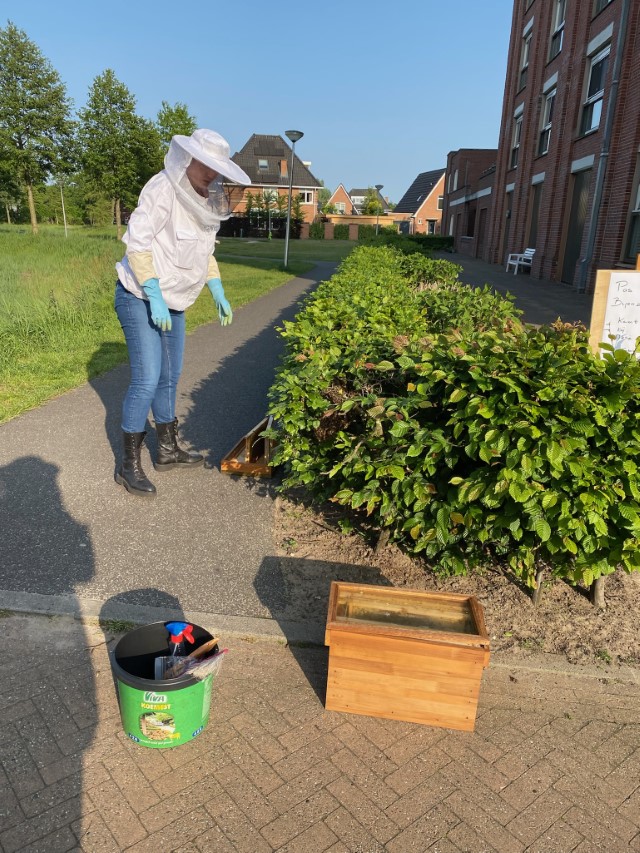 Dit voorjaar staat er ook een kleine volksverhuizing op het programma. Helaas moet de tuin waarin de kast staat gesaneerd worden, en dat betekend dat de bijen een tijdje moeten verhuizen.