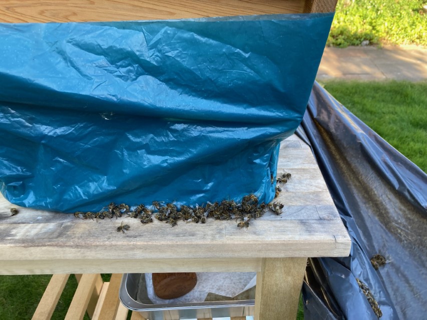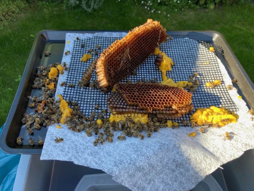 Ik voel me heel schuldig. Het is een domme en makkelijk te voorkomen fout, die veel bijen het leven heeft gekost. Enige troost is dat me dit nooit weer gebeurd.