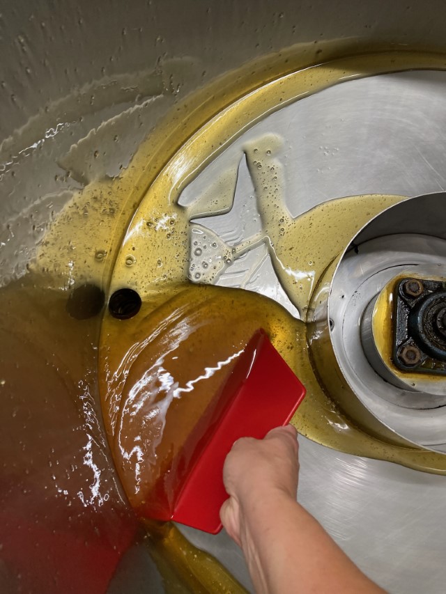 Ik had een uitgebreid hulpteam deze keer, waardoor we lekker vlot door konden werken. Schoonmaken, ramen ontzegelen, en dan het leukste, de slinger aanzetten en kijken hoe de honing in de emmer stroomt!