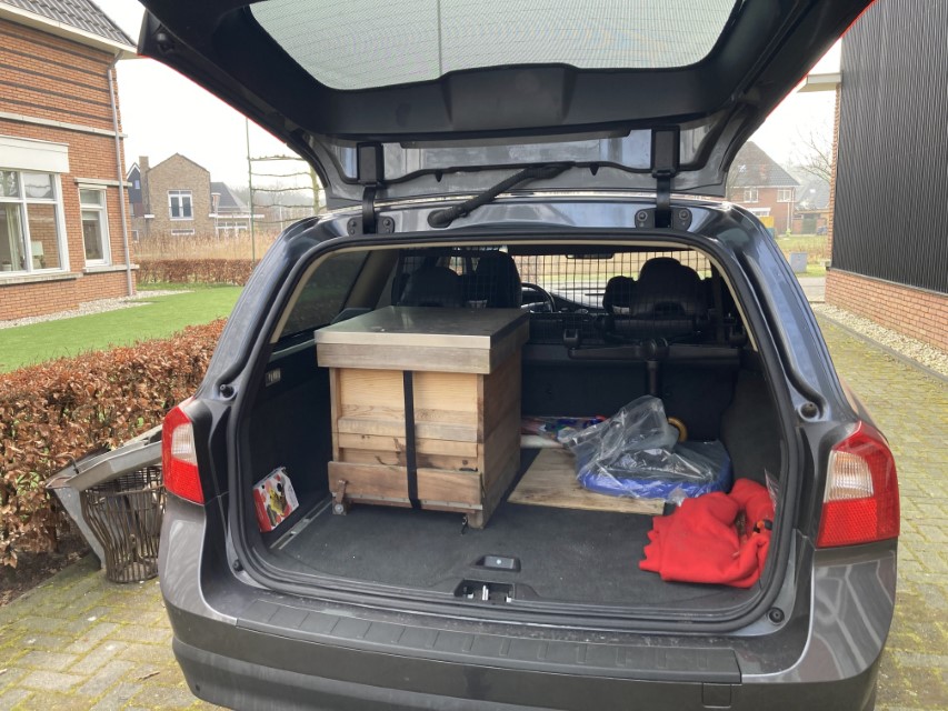 Het was handig geweest als ik deze verhuizing al eerder had gedaan. Na de winter voeren de bijen immers een nieuwe orientatievlucht uit, en dus kunnen ze tijdens de winter over kleinere afstanden verplaatst worden. Op dit moment hebben ze de eerste vlieguren al achter de rug, en is het betrouwbaarder om ze verder van huis te plaatsen. Op die manier voorkom je 'vervliegen', waarbij de bijen terug vliegen naar de originele locatie van hun kast.